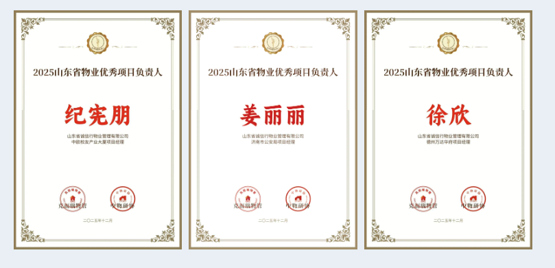 • 2025山东省物业优秀项目负责人:纪宪朋、姜丽丽、徐欣