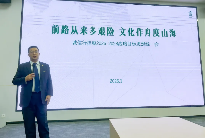 2026年1月24日至26日,诚信行控股2025年度总结复盘暨2026年度经营目标计划会议于中欧校友产业大厦25楼会议室圆满落下帷幕。集团董事长、副董事长、副总裁、各中心总监、各品牌总经理、区域公司及子公司总经理齐聚一堂,秉持自我审视的态度,以目标为导向,对结果负责,汇聚全员智慧,于创新中谋求变革,深度研讨共创,实现全员思想统一,为集团业务和员工收入持续增长筑牢基础。